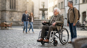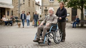 | Key Features | Aluminum frame (100kg+ capacity); S-curve seat + padded armrests; flip-up arms + swing-away footrests; multi-spoke aluminum rims; puncture-proof durable tires (zero maintenance) |